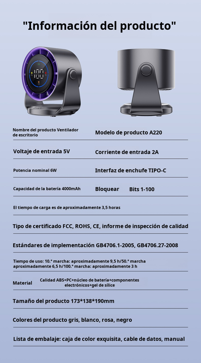 Ventilador de circulación 2025, ventilador de escritorio, ventilador silencioso USB, sin perforación